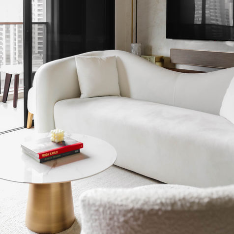 So we proposed to expand the living room by combining both the original living and dining areas, resulting in the new living area to be twice as big. We then turned the nearest bedroom into a cosy dining room, giving the vibe of a private dining concept. Proposing this new spacial change challenged our design and styling to breathe the theme seamlessly across the different areas of the home. But if you know us by now, we’re always up for a good challenge!