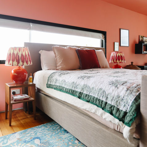 We painted walls in rich, saturated colours throughout, but the real star? The patio. What was once a stark white box that lacked personality is now this warm, sunlit reading nook smack in the middle of the living room. A total mood booster everytime you walk past and look at it.